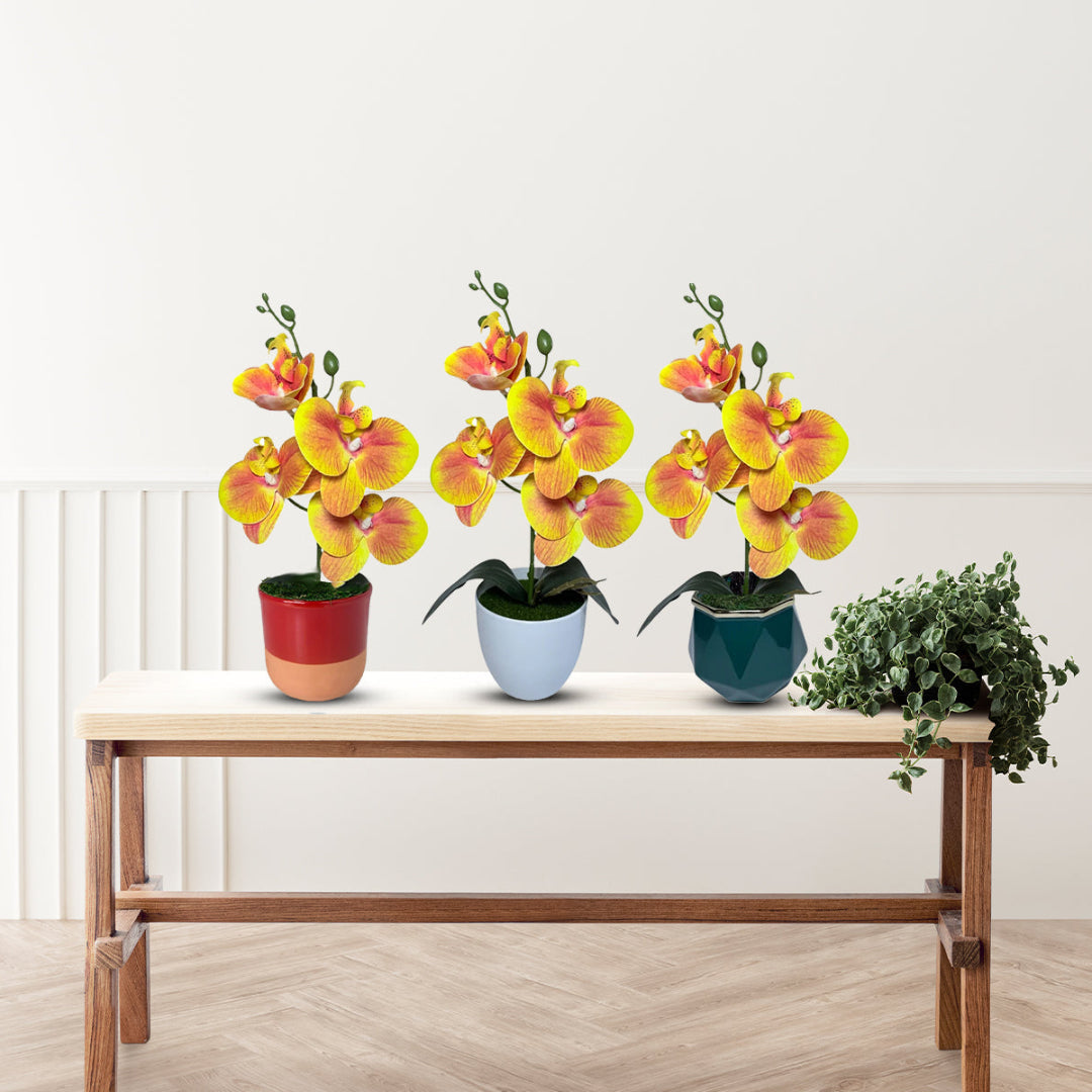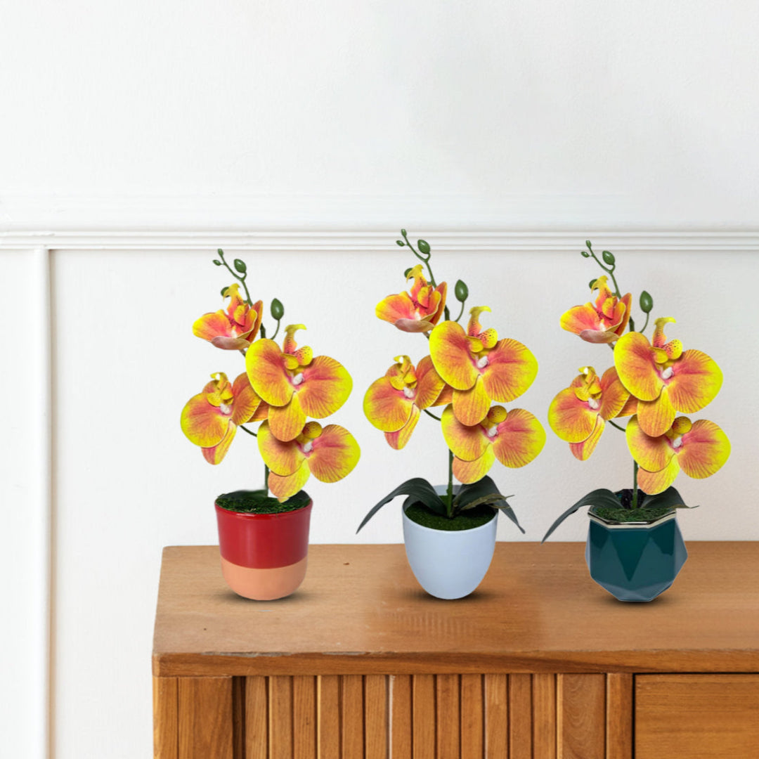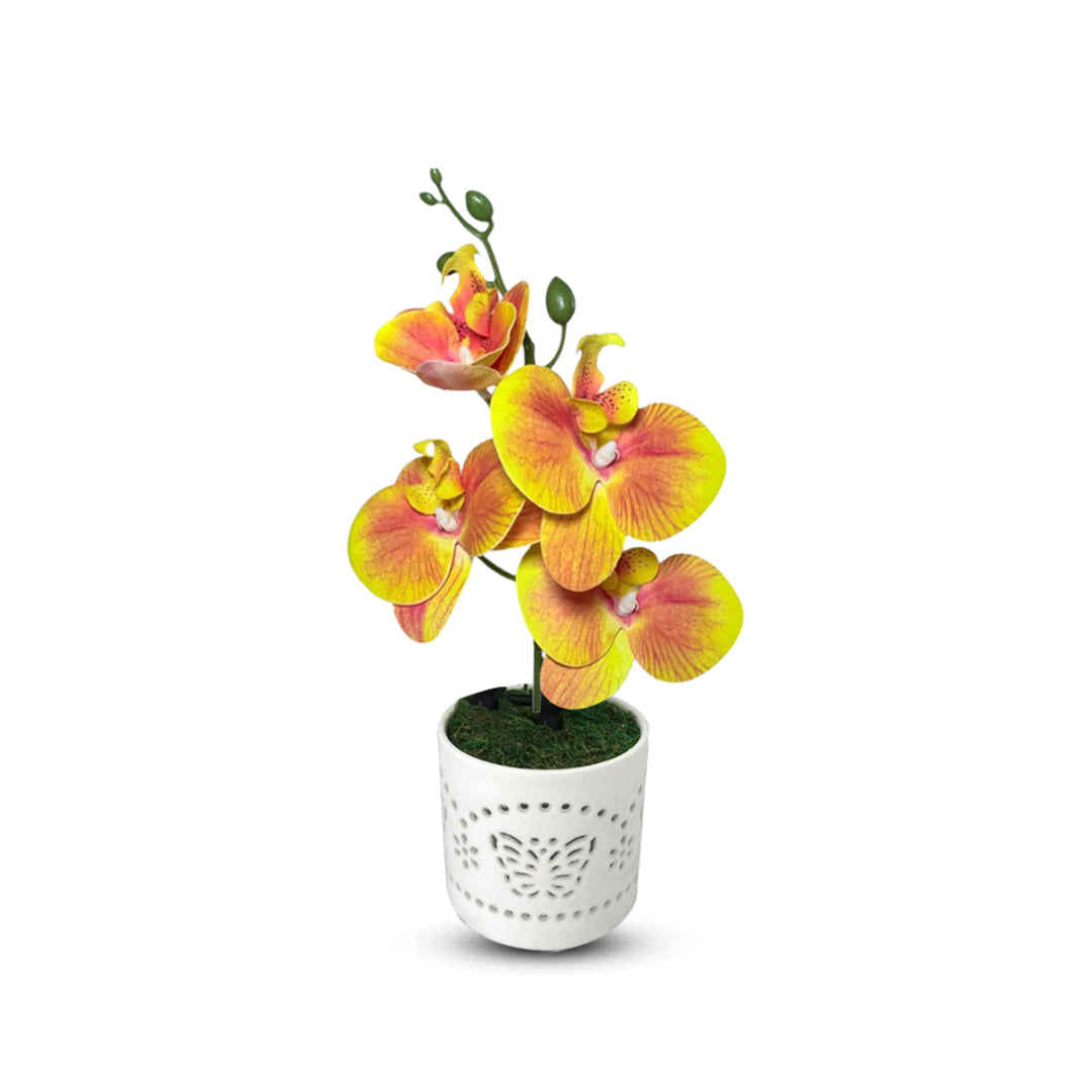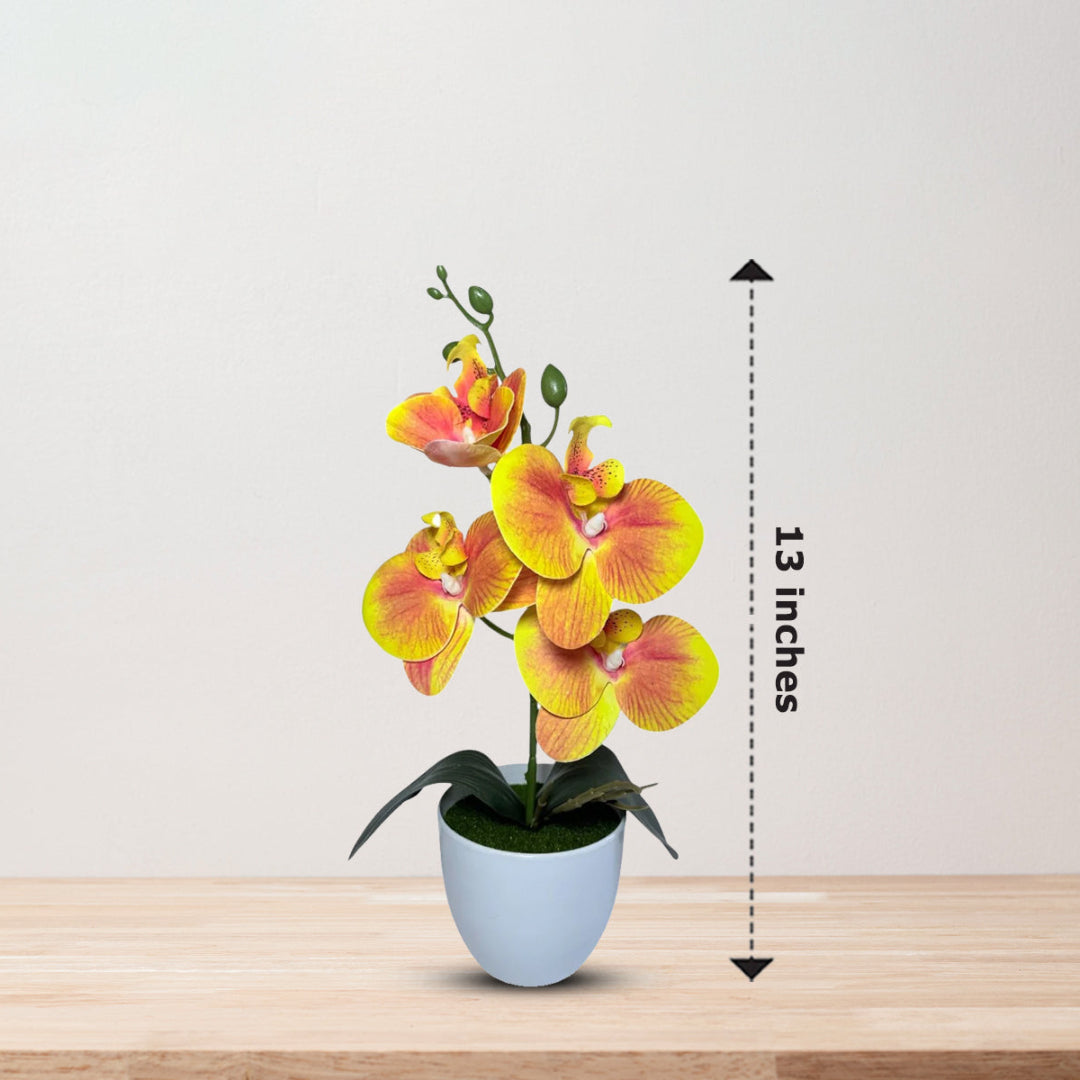 Gorgeous Yellow Mini Orchid In Different Type of Pot - Artificial