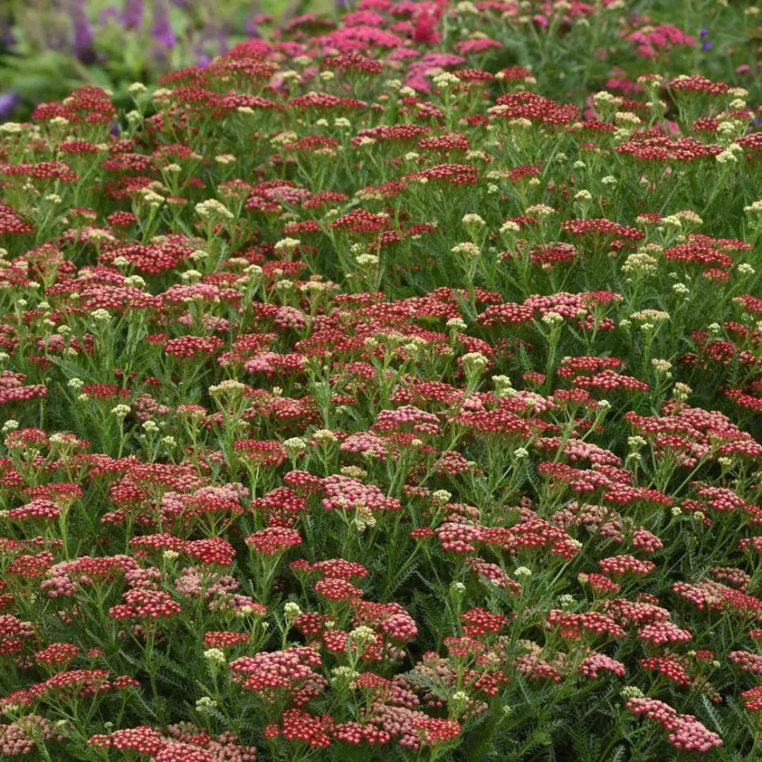 Achillea New Vintage Series 'Red' is a compact, vibrant yarrow variety known for its bold red flower clusters and fern-like foliage. Perfect for sunny borders, butterfly gardens, and drought-tolerant landscapes, it reblooms with regular deadheading and offers long-lasting color throughout the summer. Ideal for cut flowers and pollinator support.
