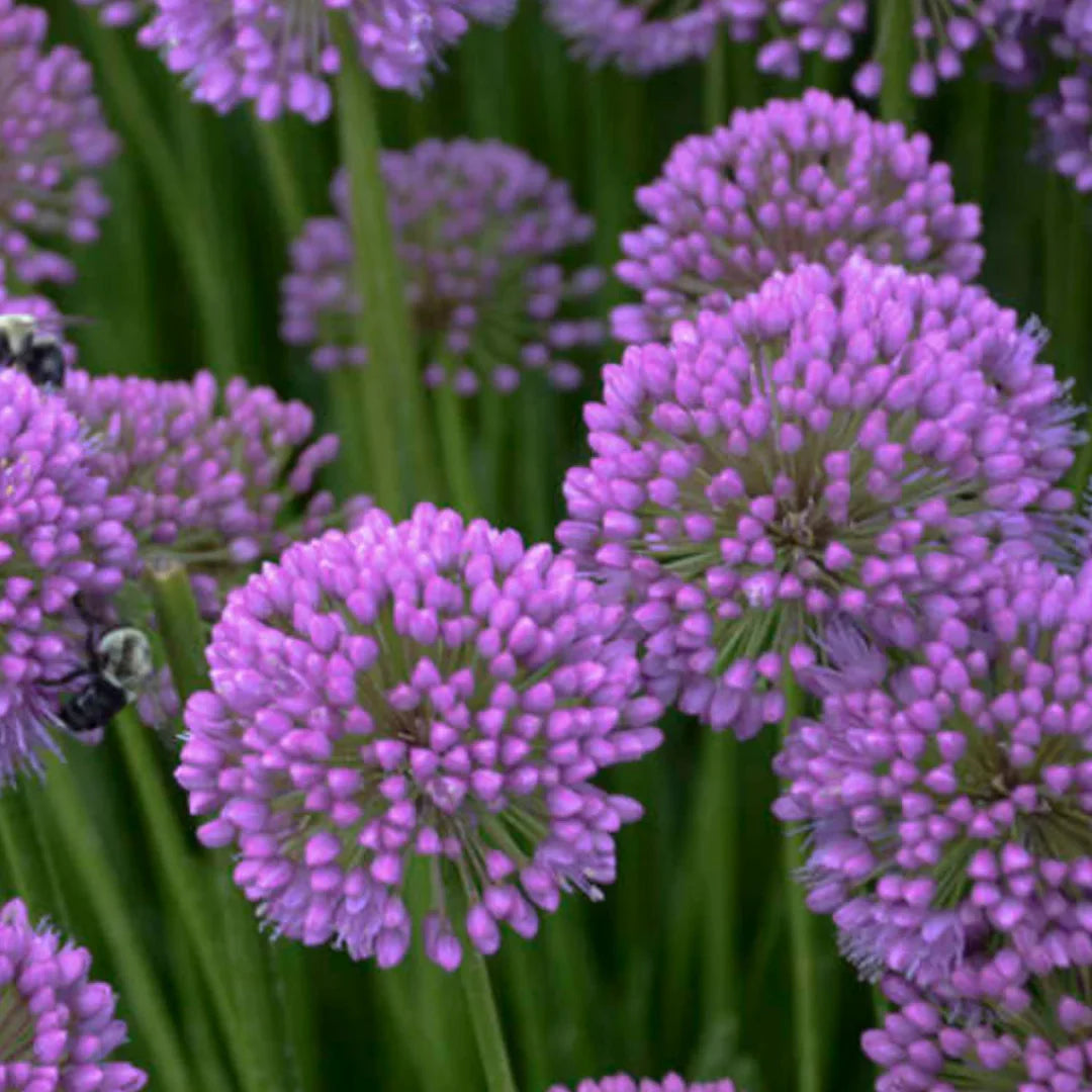 Allium 'Millenium' is a clump-forming ornamental onion prized for its globe-shaped, rosy-purple flower heads and tidy mounds of glossy green, grass-like foliage. Blooming in mid-to-late summer, it brings structure, pollinators, and color to borders and containers alike. Deer- and rabbit-resistant, drought-tolerant, and easy to grow!