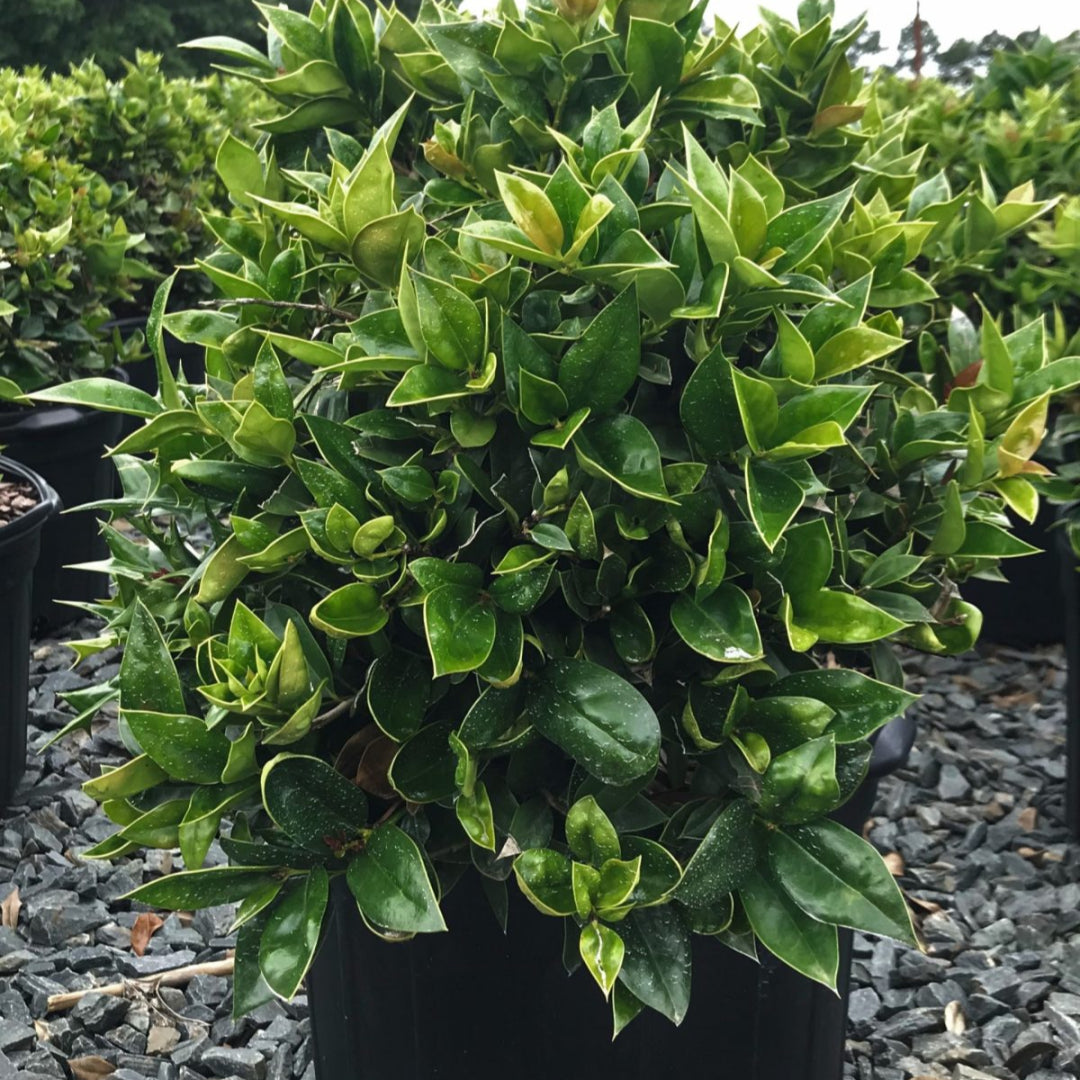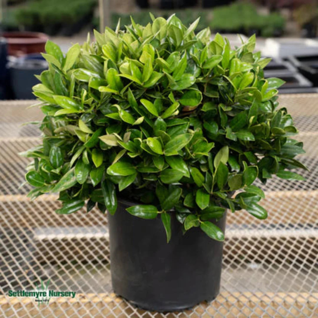 The Carissa Holly is a compact, low-maintenance evergreen shrub known for its dense growth habit and attractive glossy green foliage. Each leaf features a distinctive single spine at the tip, giving it a unique look while remaining easy to handle compared to other hollies.