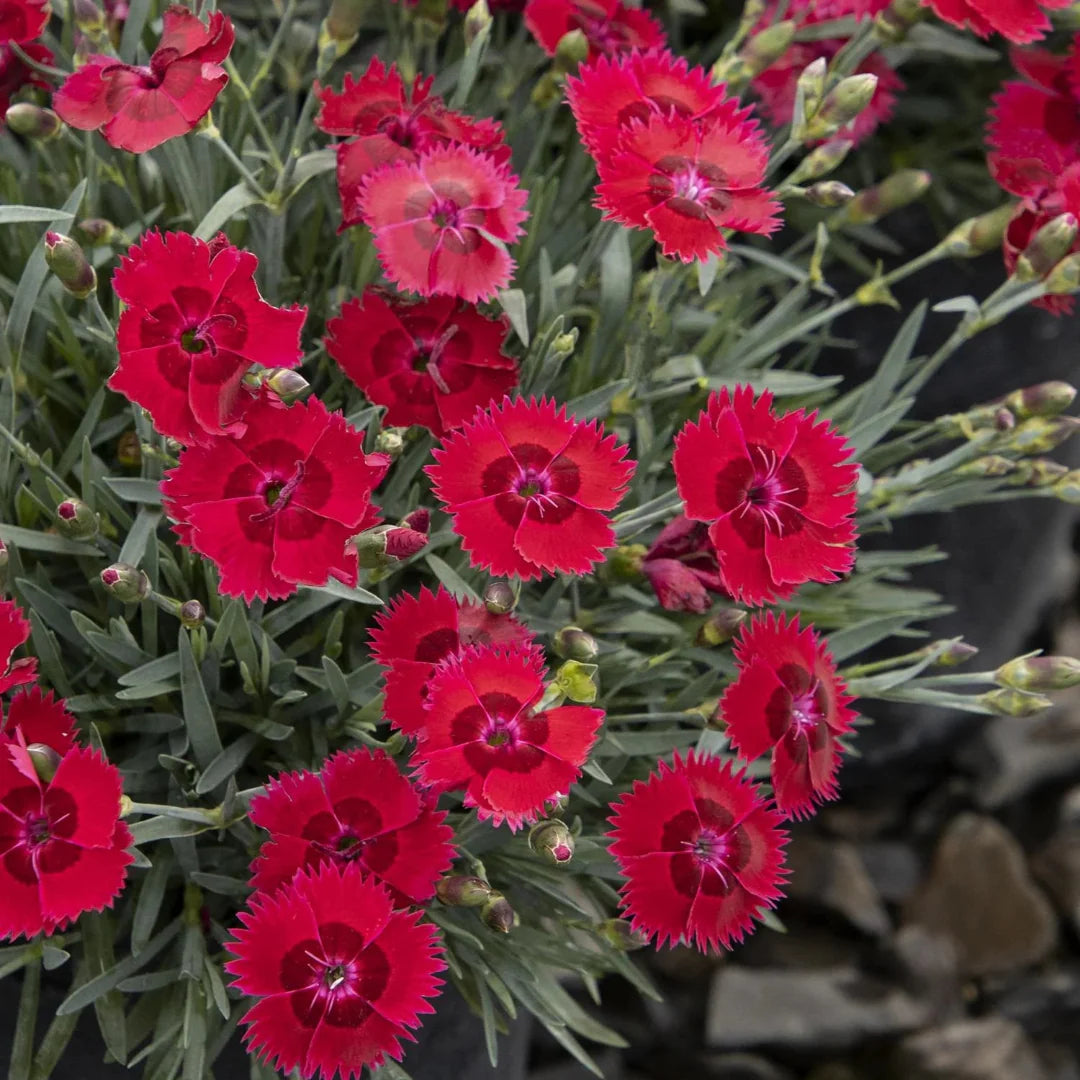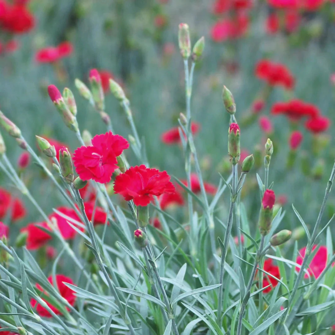 Fire Star Dianthus is a striking perennial known for its vivid scarlet-red blooms and spicy fragrance. Compact and mounding with silvery-blue foliage, it provides long-lasting color in rock gardens, borders, and containers. This easy-care plant is deer-resistant, drought-tolerant, and a favorite of pollinators.