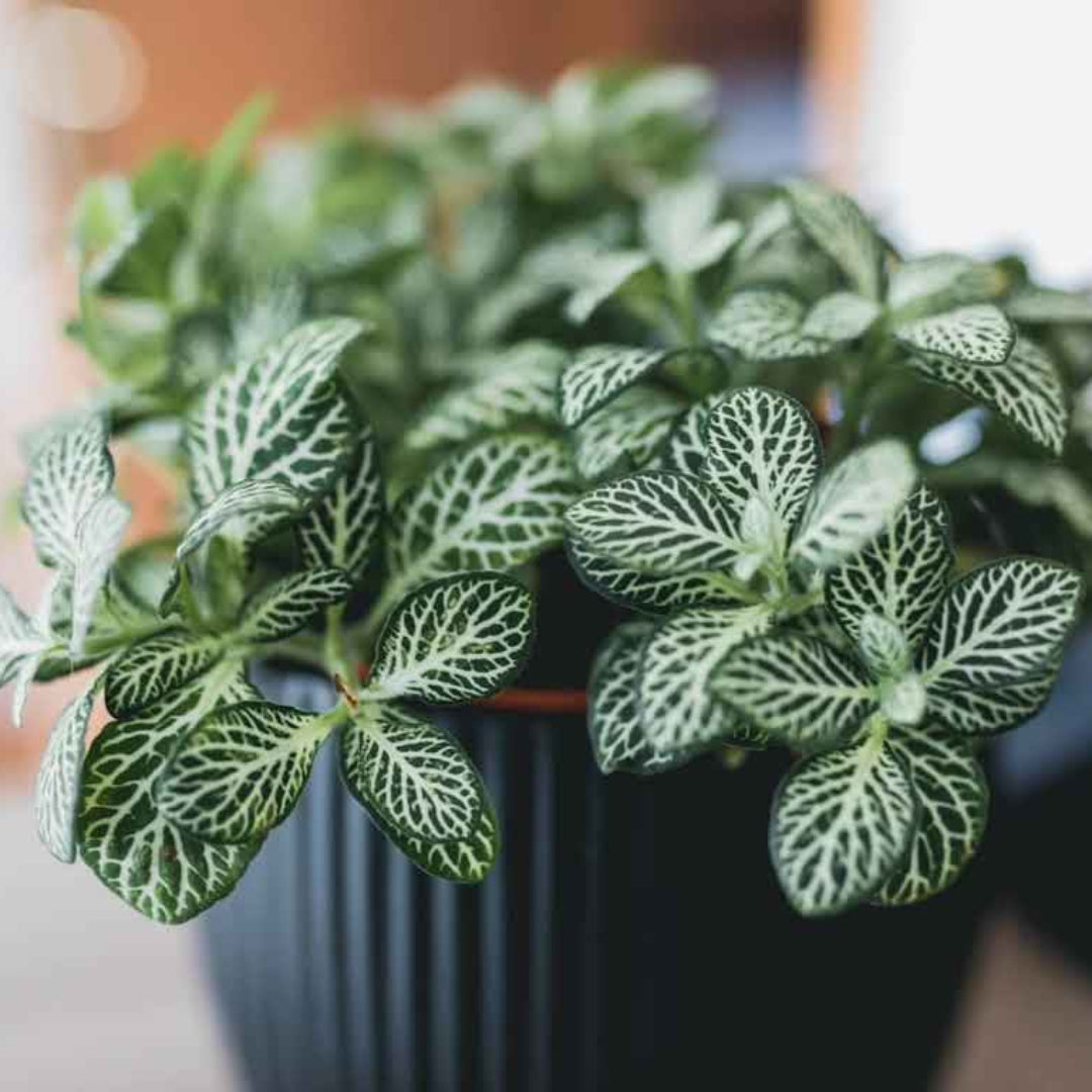 Fittonia Albivenis Indoor Plant is a compact and colorful houseplant admired for its striking veined foliage. The deep green leaves are beautifully patterned with contrasting white, pink, or red veins, making it a perfect decorative accent for desks, shelves, and terrariums.