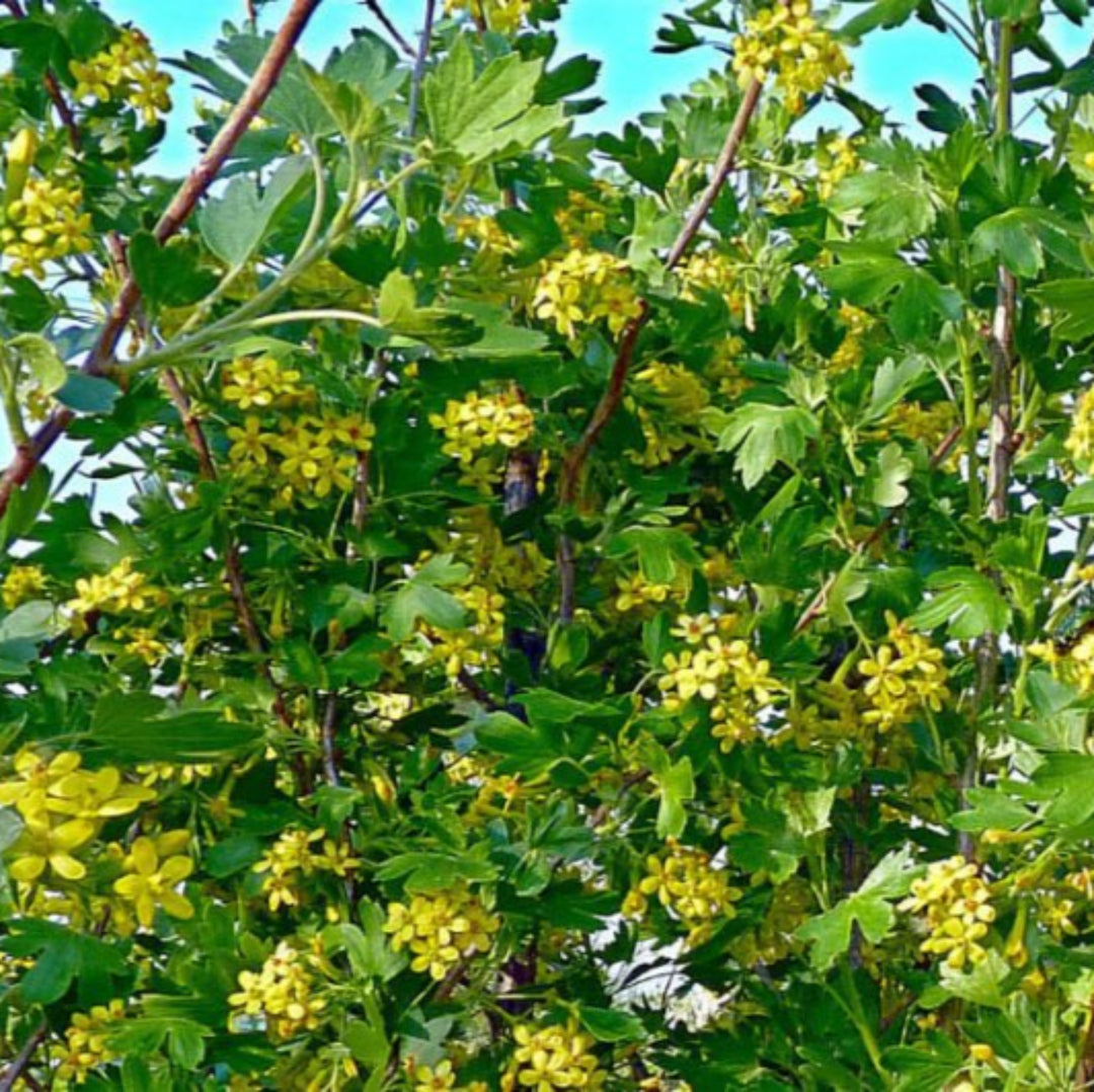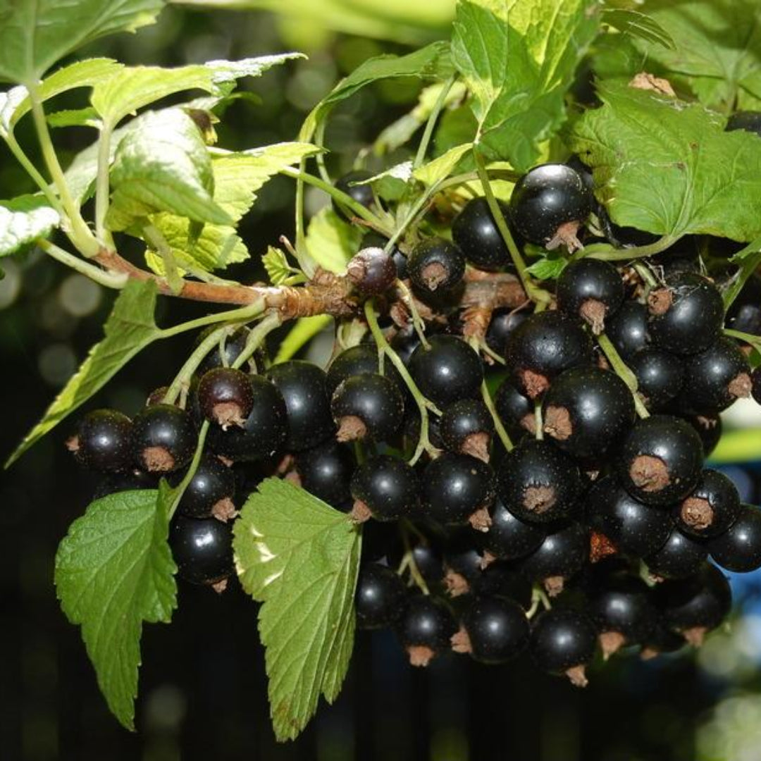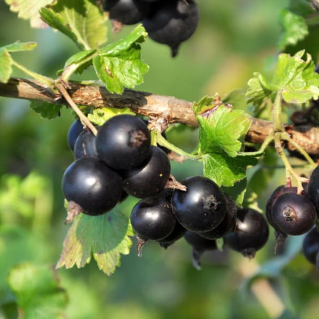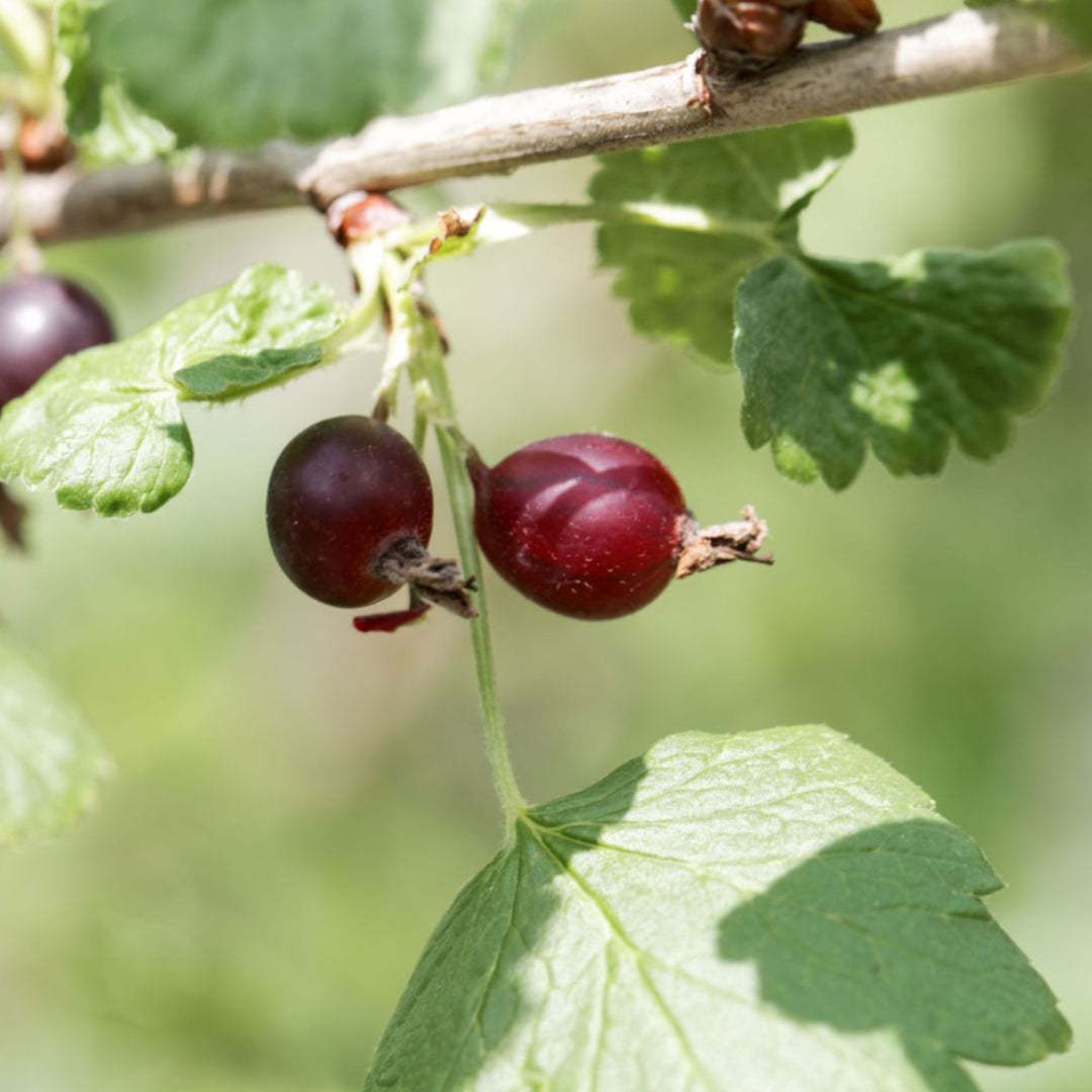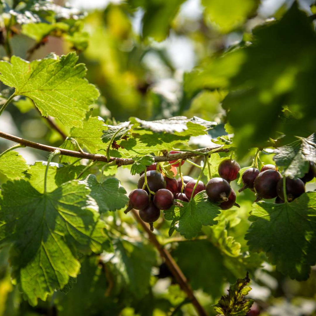 The cross between gooseberry and currant. The rich berry taste is reminiscent of gooseberry with a kiss of black currant. Deep-red, almost-black fruit is high in vitamin C and forms in large clusters, ideal for juices, jams and jellies, and fresh-eating.