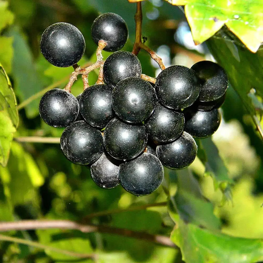 Noble Muscadine is a productive, self-fertile grapevine producing large clusters of dark purple, sweet grapes. Perfect for fresh eating, juice, and jelly, this disease-resistant vine thrives in home gardens and small vineyards.