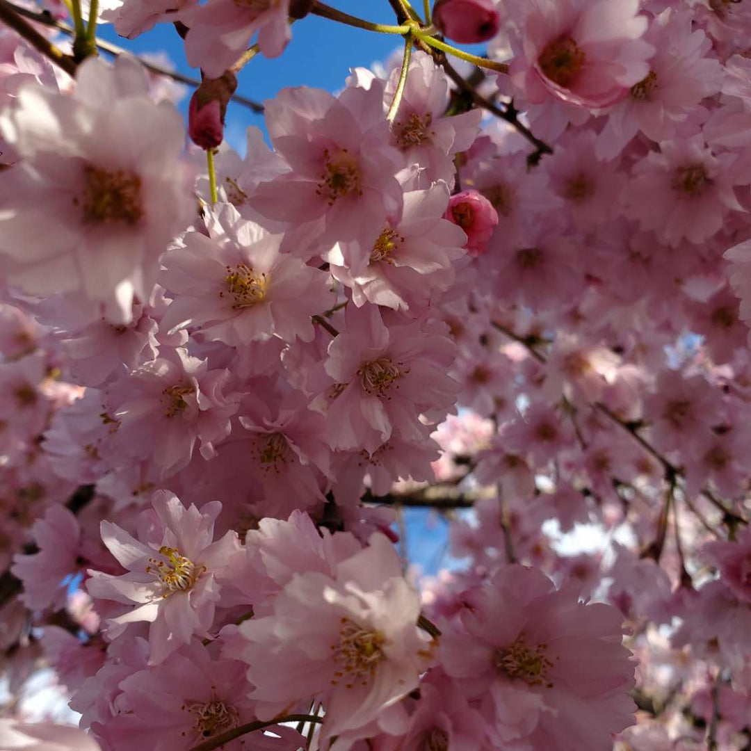 The Okame Cherry Tree is one of the earliest blooming cherry trees, showcasing masses of vivid pink flowers in early spring. Its upright, rounded habit and fast growth make it an eye-catching addition to any garden or landscape.
