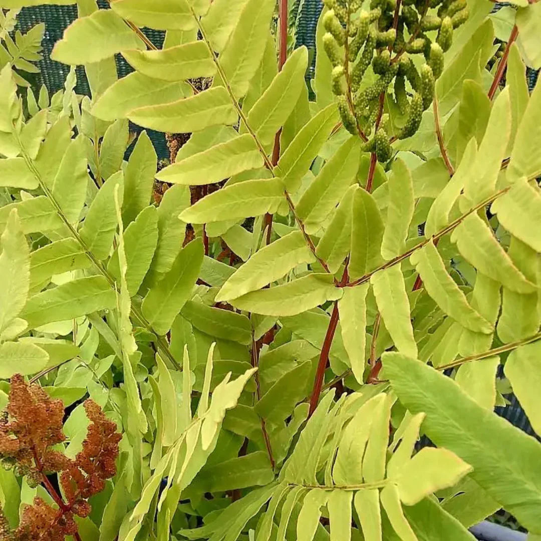 Royal Fern is a majestic deciduous fern with tall, airy fronds that bring a bold, architectural presence to shade gardens. Its lush green foliage thrives in moist soils, making it perfect for pondsides, woodland gardens, and shady borders. Hardy and low-maintenance, it adds elegance and drama wherever planted.