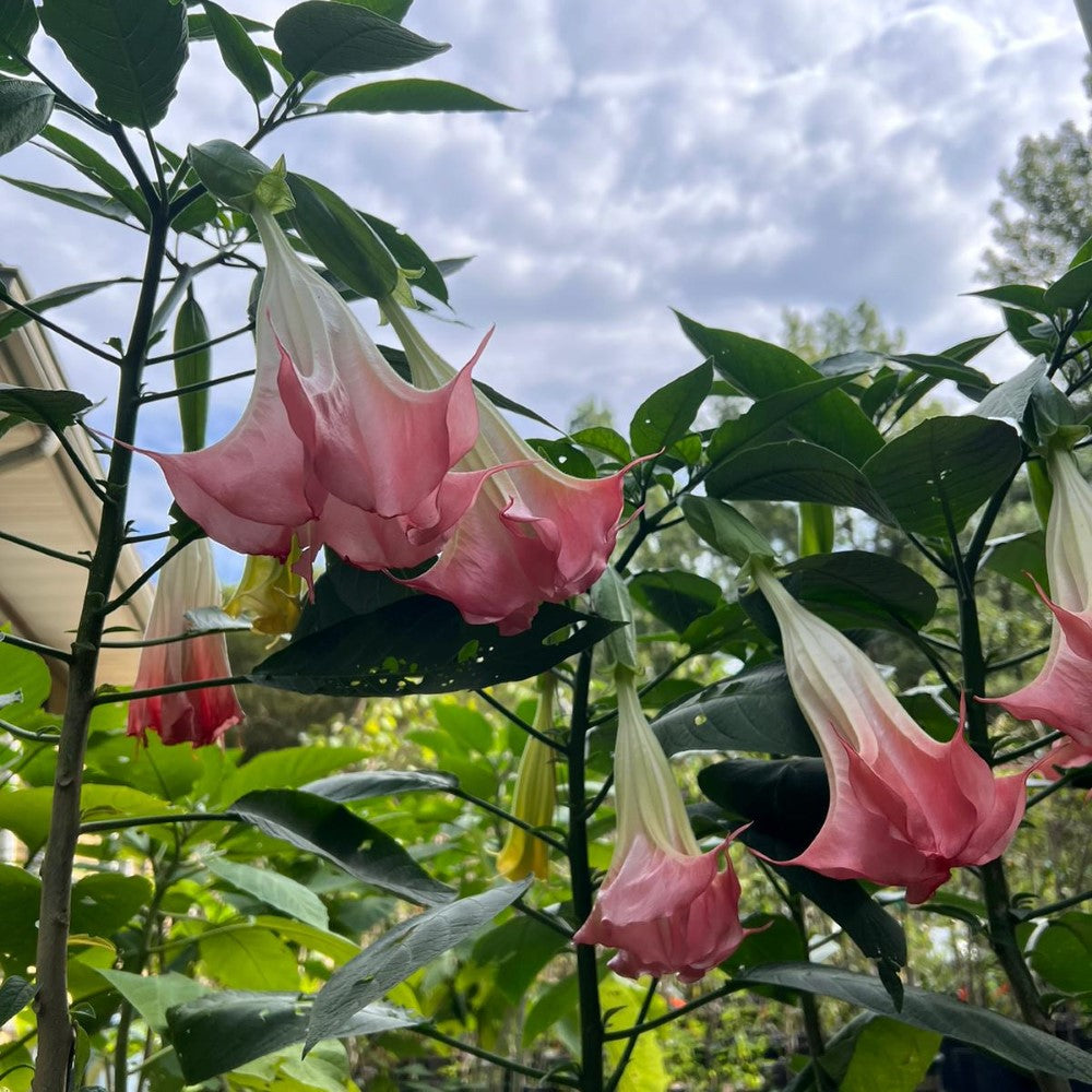 Pink Angel’s Trumpet has large, fragrant, 8-10” pink trumpet flowers which bloom evening to early morning emitting a lovely fragrance. Winter hardy to USDA Zones 8-10 where Angel’s Trumpet Pink plants are typically grown as shrubs or small trees to 15’ tall in organically rich, medium moisture, well-drained soils in full sun. During the growing season, plants are heavy feeders that need regular fertilization to stimulate new growth and flowers. Plant in containers or the garden near patios, walkways, or open windows to enjoy the fragrance and beauty of the flowers.