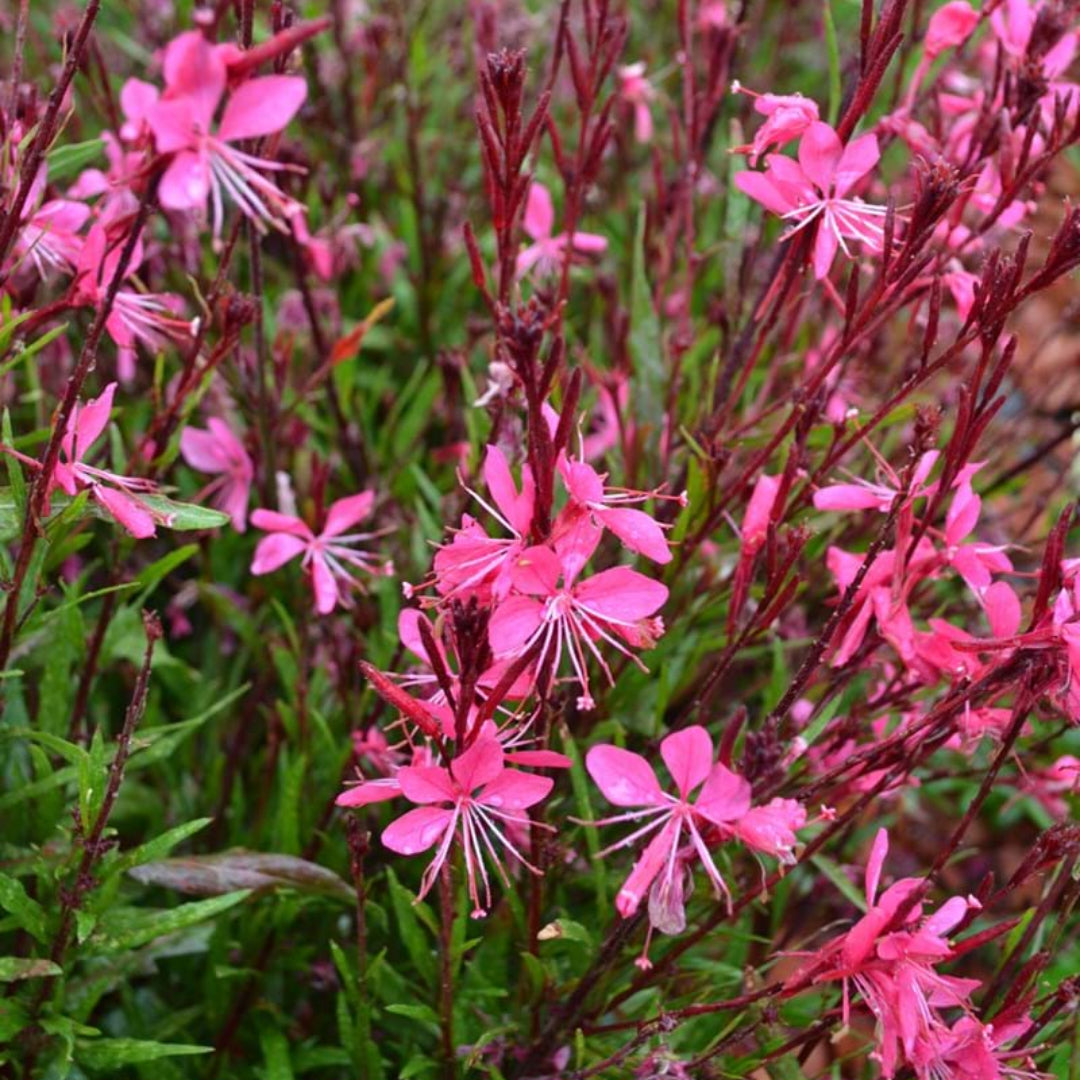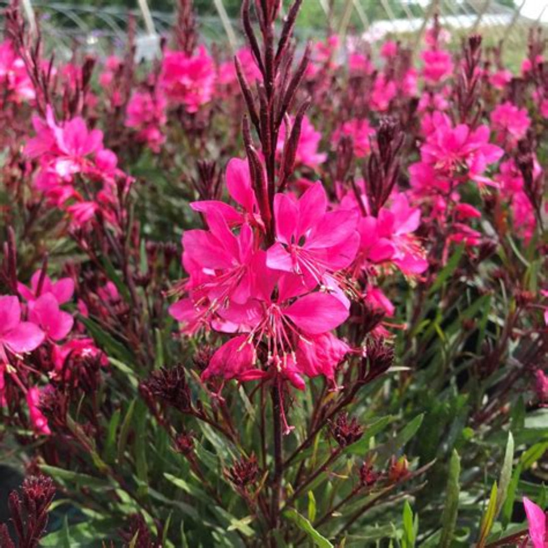 Gaura Belleza® 'Dark Pink' is a graceful, airy perennial that blooms non-stop with deep pink, butterfly-shaped flowers dancing on slender stems ��. Compact and heat-tolerant, it's ideal for containers, borders, or pollinator gardens where movement and color add a soft charm all season long.