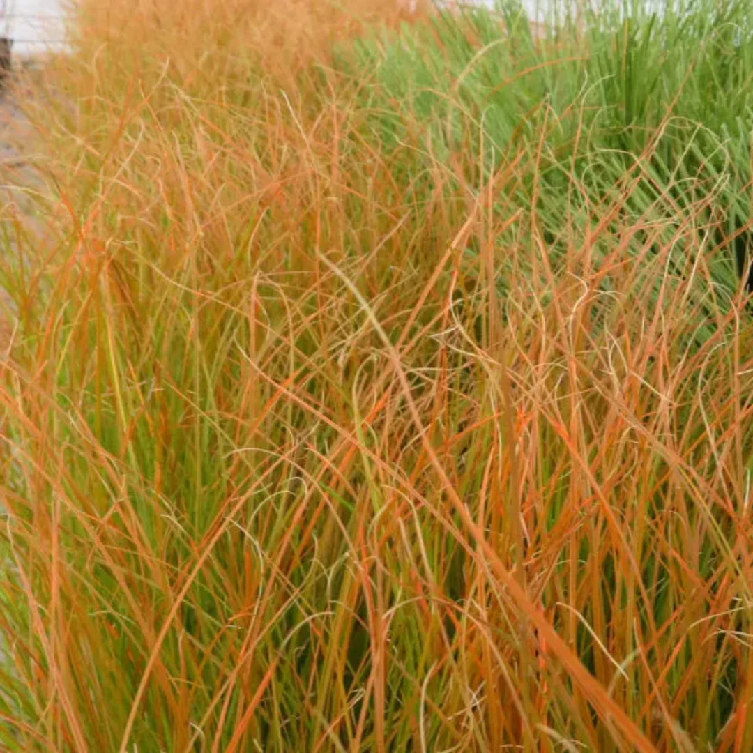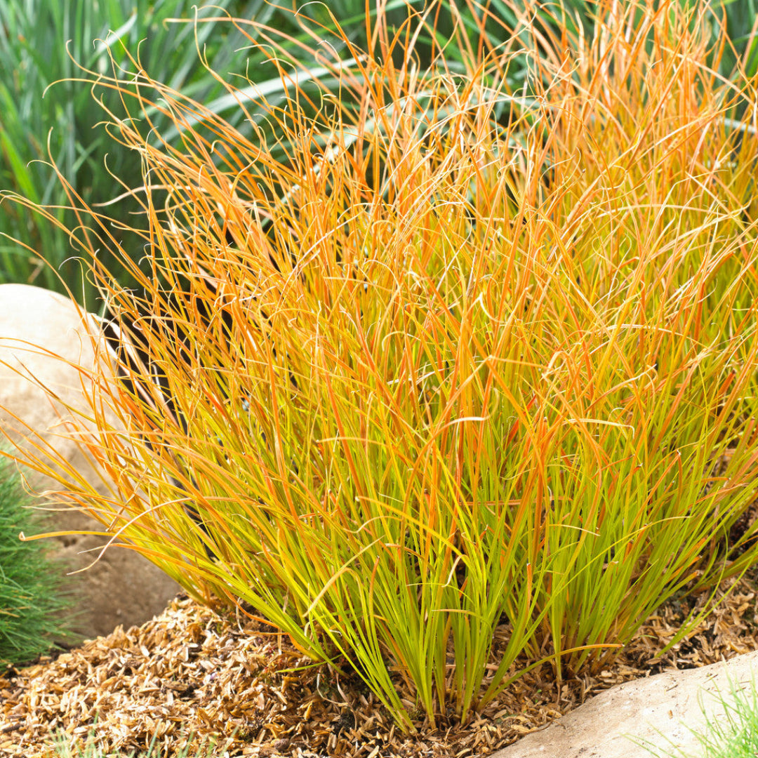 CAREX TESTACEA 'PRAIRIE FIRE'™ - ORANGE SEDGE is an ornamental evergreen grass known for its fine, arching foliage that transitions from olive-green to brilliant copper-orange tones, especially in cooler months.