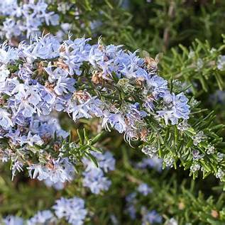 Flowers: Small, pale blue to lavender blooms in spring and intermittently through summer.