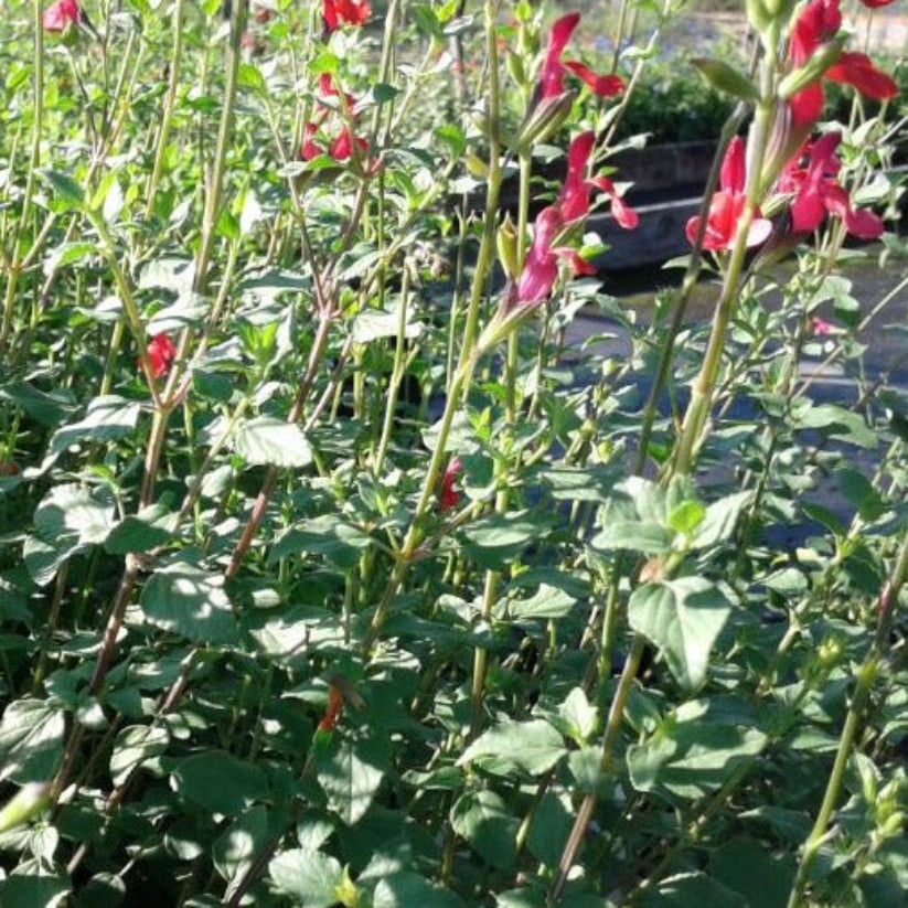 Salvia microphylla 'Hot Lips', commonly known as Hot Lips Sage or Baby Sage, is a captivating perennial shrub celebrated for its distinctive bicolored flowers and aromatic foliage. This plant is a standout choice for gardeners seeking to attract pollinators and add vibrant color to their landscapes.