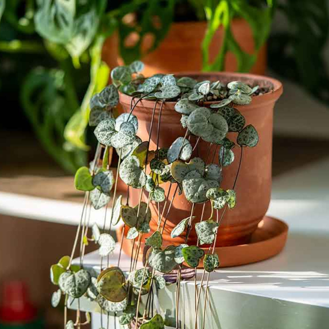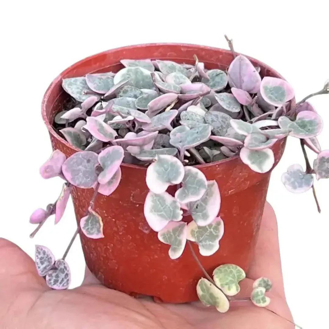 String of Hearts Indoor Plant is a delicate trailing houseplant known for its small, heart-shaped leaves patterned in soft green and silver. Its cascading vines create a graceful, romantic look that makes it perfect for hanging baskets, shelves, and decorative pots.