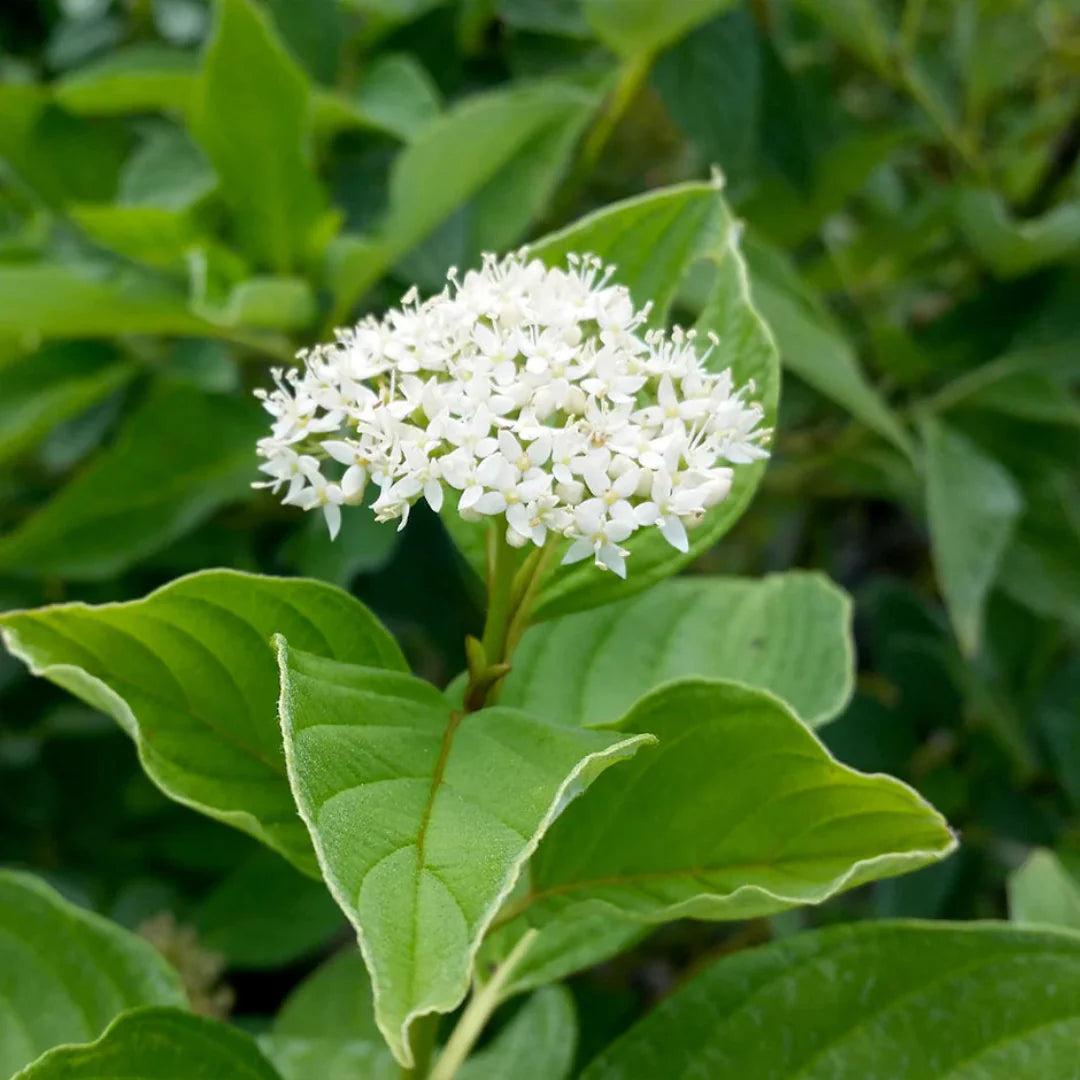 In spring, clusters of creamy white flowers appear, followed by lush green foliage in summer. Come fall, the leaves shift to shades of red and purple before dropping to reveal its glowing winter stems. Hardy and low-maintenance, it’s excellent for hedges, borders, and mixed shrub plantings.